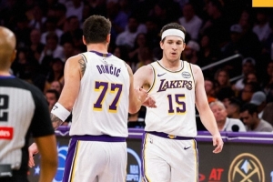 合砍60分!湖人赢球海报:封面为东契奇里弗斯击掌瞬间