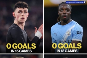 CBS社媒晒出曼城部分球员2026年的进球数量,蓝月亮今年进攻端的表现难言出色。