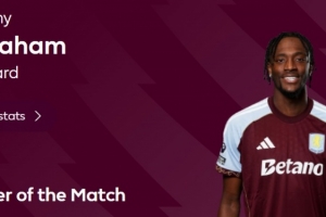 绝平!打进回归英超首球的亚伯拉罕当选维拉1-1利兹联全场最佳