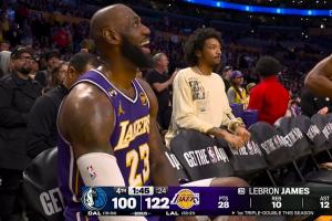 此外,詹姆斯也以41岁45天的年龄,刷新了卡尔·马龙(40岁127天)2003年的纪录,得到NBA历史最老三双!