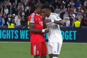 葡萄牙媒体记录报报道,赛后气氛友好,维尼修斯与本菲卡球员们拥抱致意,本菲卡后卫卡布拉尔向维尼修斯要球衣。